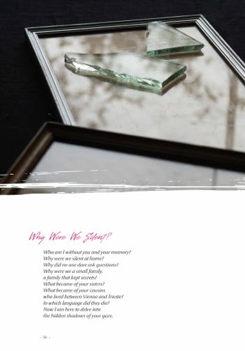 We can never know for sure, but perhaps for Helena, as for Aunt Cilli, the mirrors of her life were not devoid of presences, even when no one stood before them. They too may have been crowded with lost loved ones, and the energies, beauty and excitement of prewar Vienna. There was so much she could never say to her beloved great granddaughter, about siblings, cousins, friends, and neighbors, taken prematurely from this world during Europe’s longest night.
