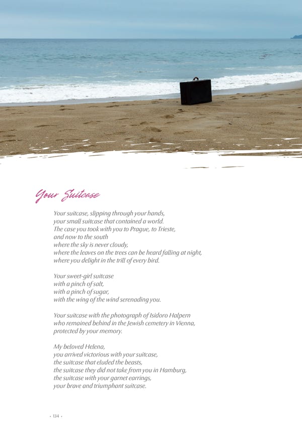 La conmovedora colección de poemas en español, la lengua materna de Marjorie Agosín, junto a la delicada traducción al inglés de Alison Ridley es acompañada por imágenes evocativas del fotógrafo chileno Samuel Shats y la reproducción de recuerdos personales de la misma Helena.
